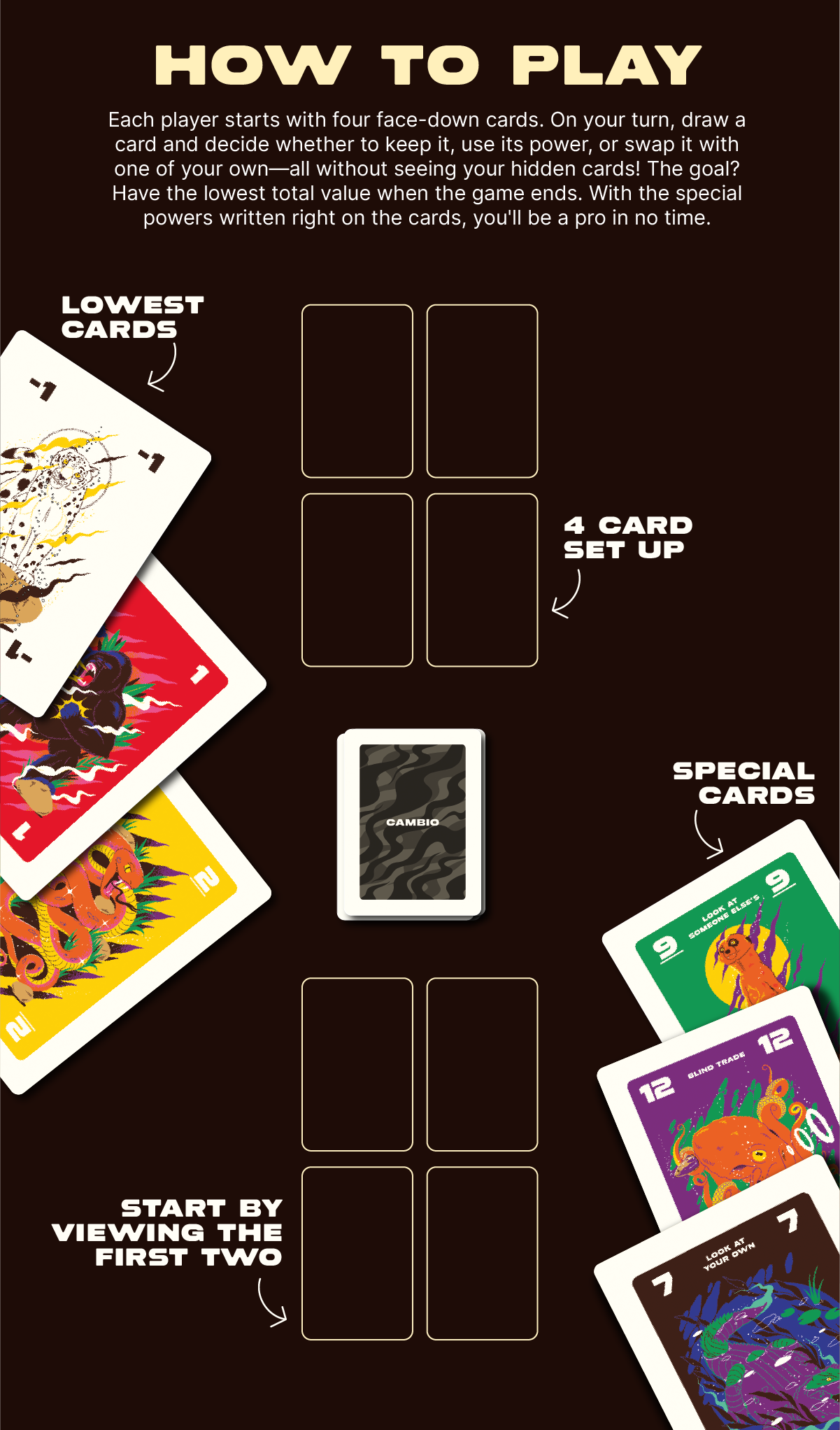 How do we get our generation off screens and back into the real world? Cambio: Into the Wild is a card game designed to connect people with nature. The sustainable deck was made to encourage in-person games in the outdoors to combat screen time and social media taking over our generation. Whether it’s waiting for the bbq on the beach or at the bar after a ski session, the game is to be taken outside and into the wild.